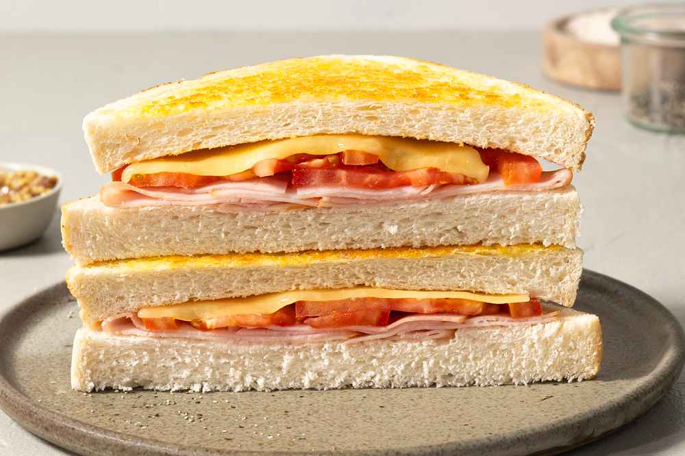 Thick white bread filled with the Aussie classic combination of premium sliced ham and tasty cheese