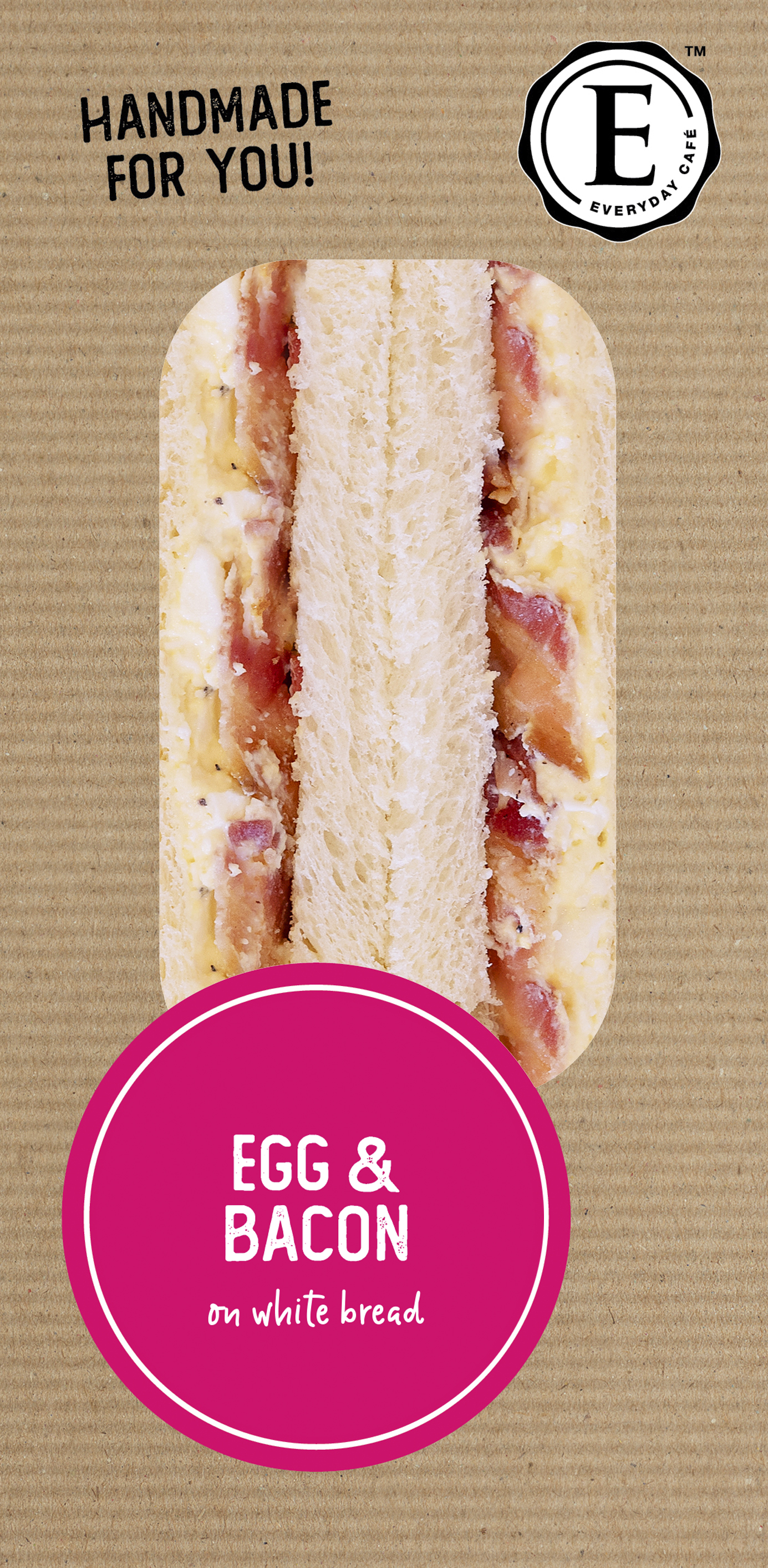 Smoked streaky bacon and creamy egg with Smokey BBQ sauce on soft white bread